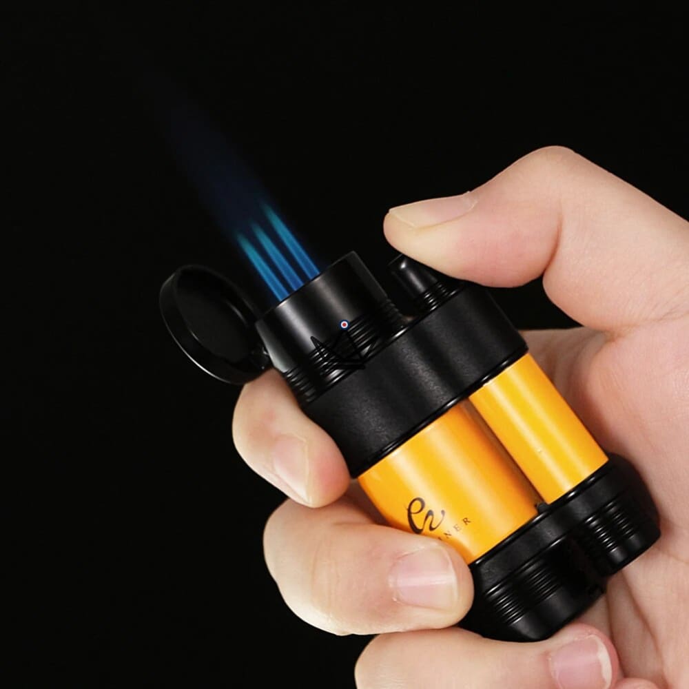 ✦ Briquet Chalumeau 3 Torches : Retrouvez l'essentiel avec ce briquet chalumeau équipé de 3 torches puissantes, offrant une flamme fiable et précise et d'un poinçon à cigare dans sa base.