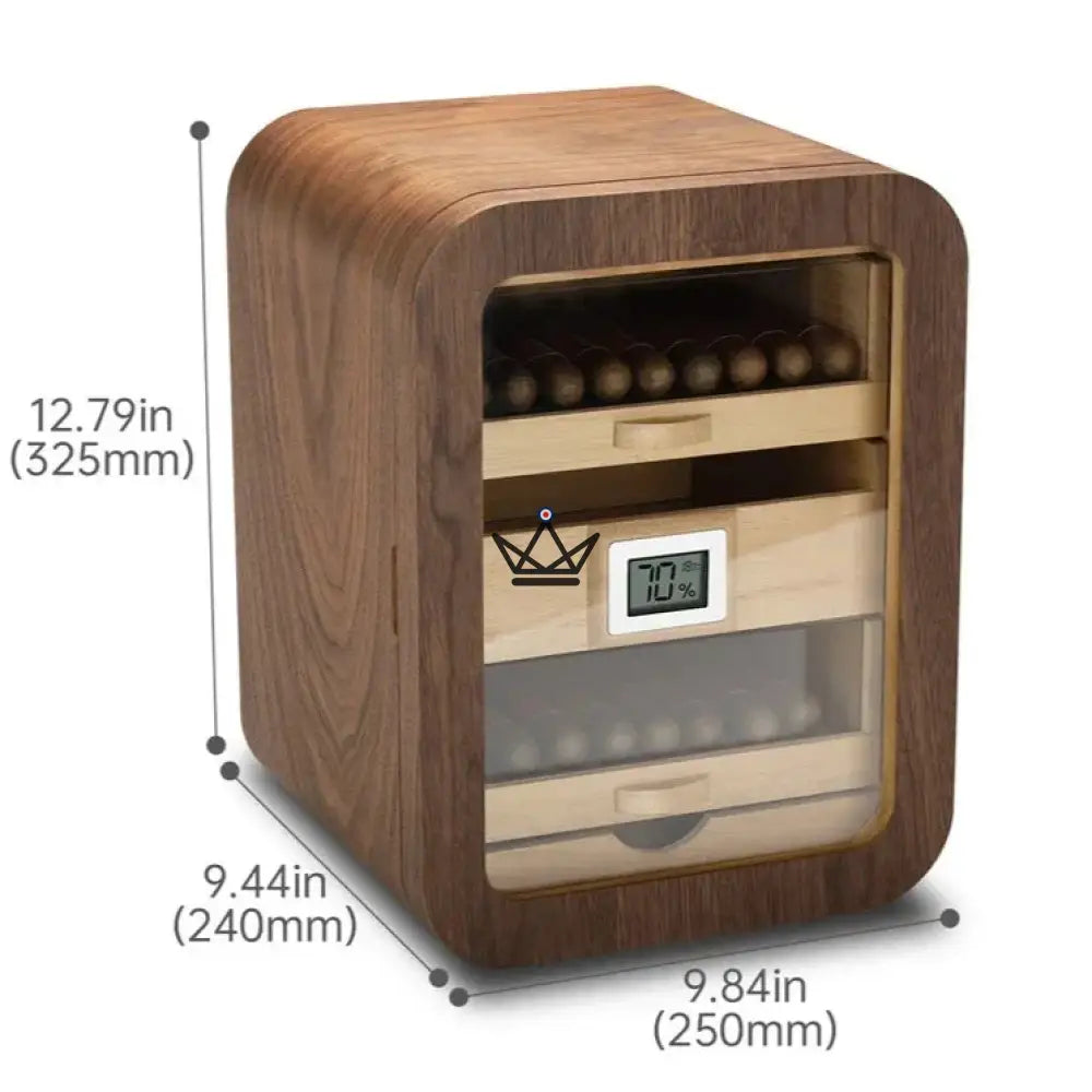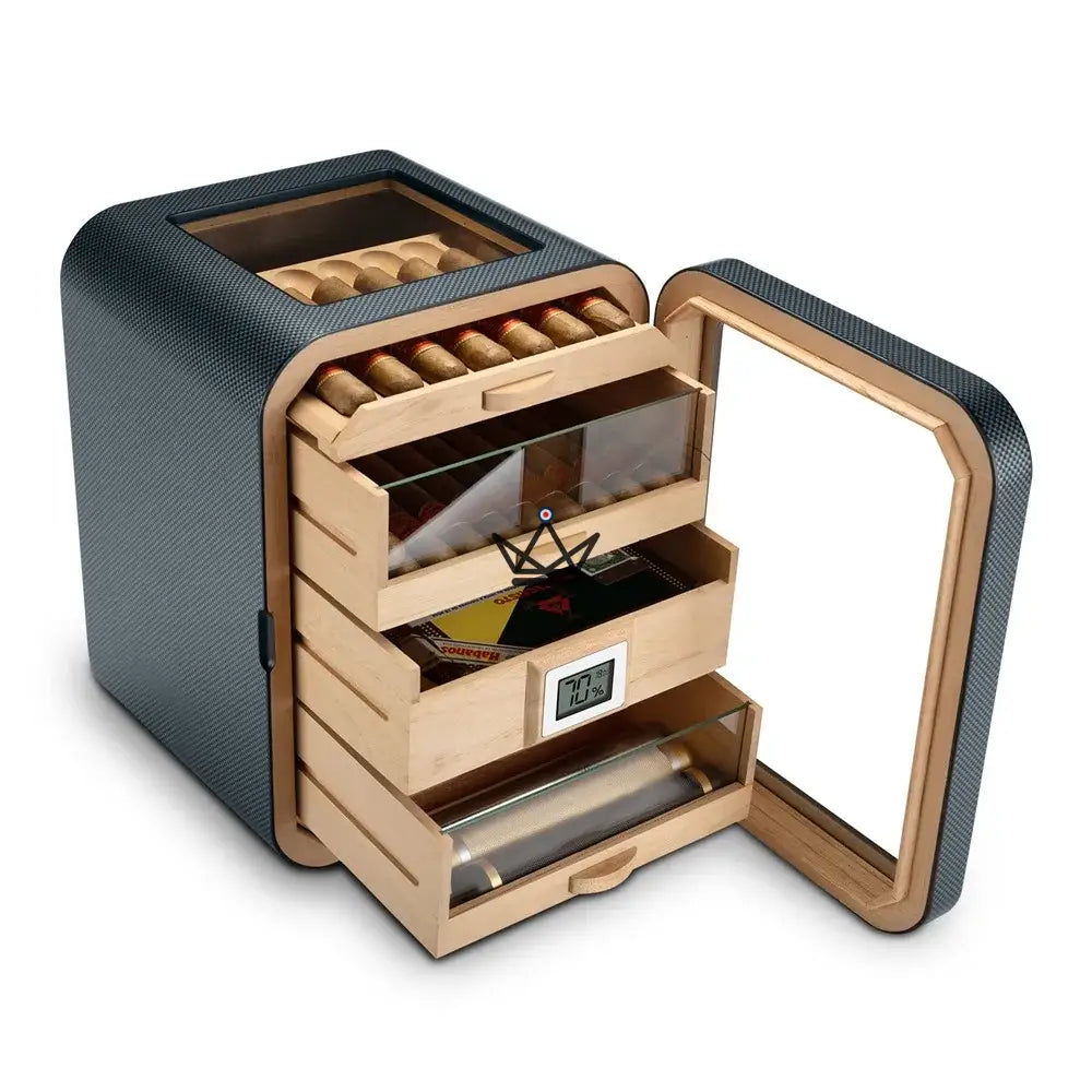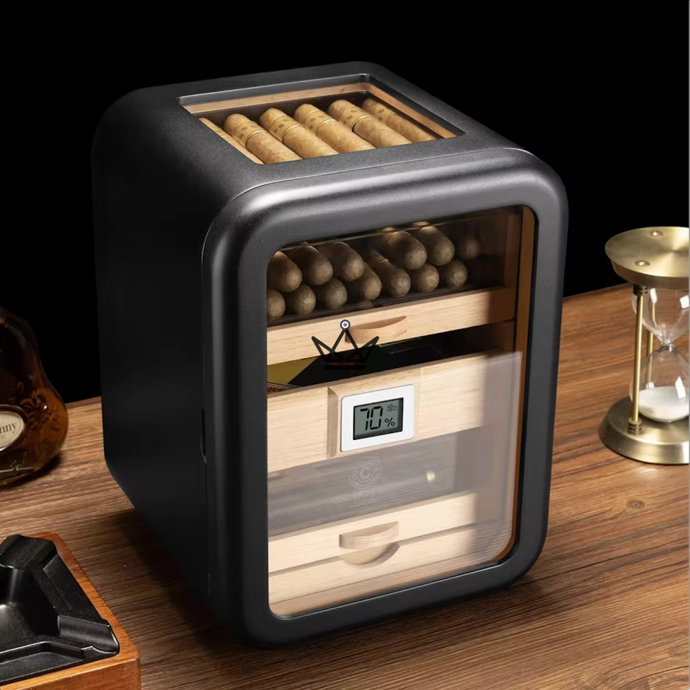 - Humidificateur : Inclus pour maintenir un taux d'humidité optimal, garantissant que vos cigares restent frais et prêts à être savourés.
