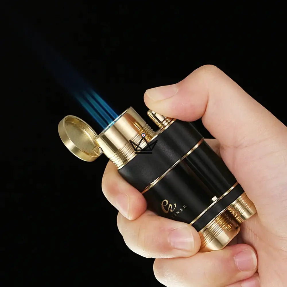 Entdecken Sie das Taschenlampenfeuerzeug TOWER, das ultimative Zubehör zum eleganten und präzisen Anzünden Ihrer Zigarre. Dieses Feuerzeug ist mit drei leistungsstarken, verstellbaren Fackeln ausgestattet und bietet eine kraftvolle und gleichmäßige Flamme, die jedes Mal für die perfekte Zündung sorgt.