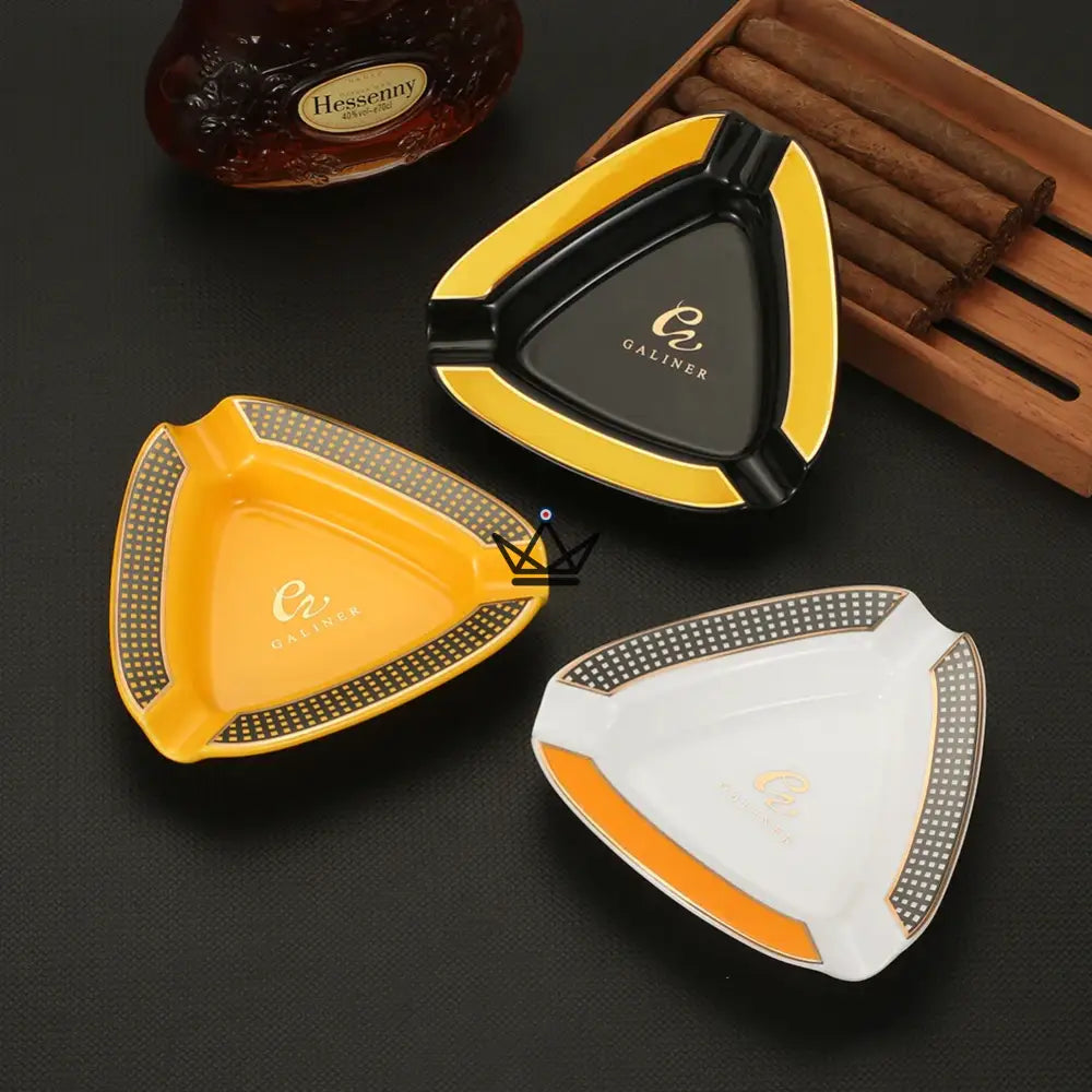 Der Zigarrenaschenbecher - Triade Elegance ist ein außergewöhnliches Stück, das Ästhetik und Funktionalität vereint und speziell für Kenner entwickelt wurde. Seine einzigartige dreieckige Form, erhältlich in drei faszinierenden Farben, macht dieses Accessoire zu einem Blickfang der Eleganz in jedem Raucherbereich.