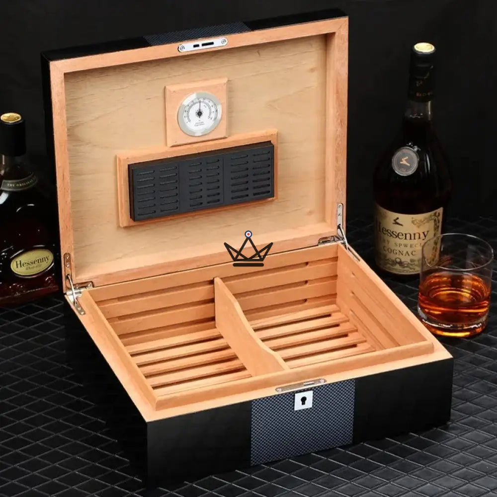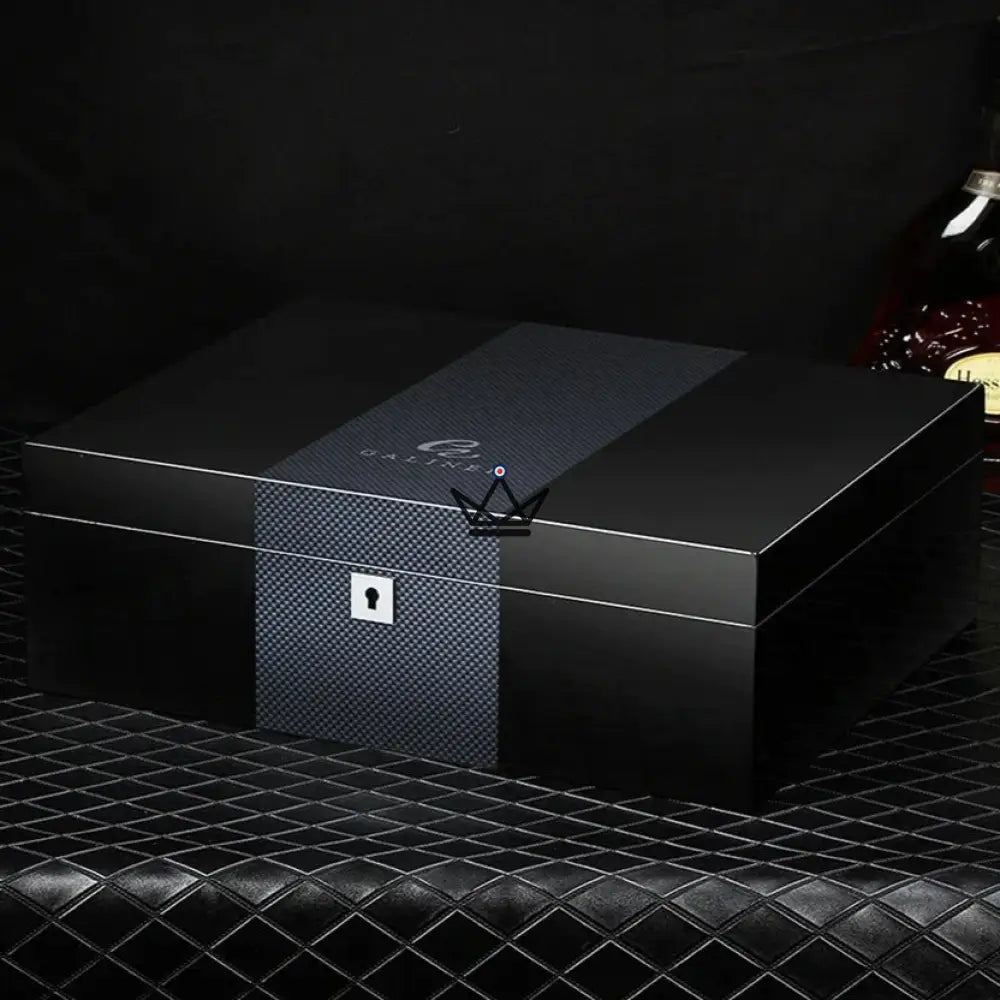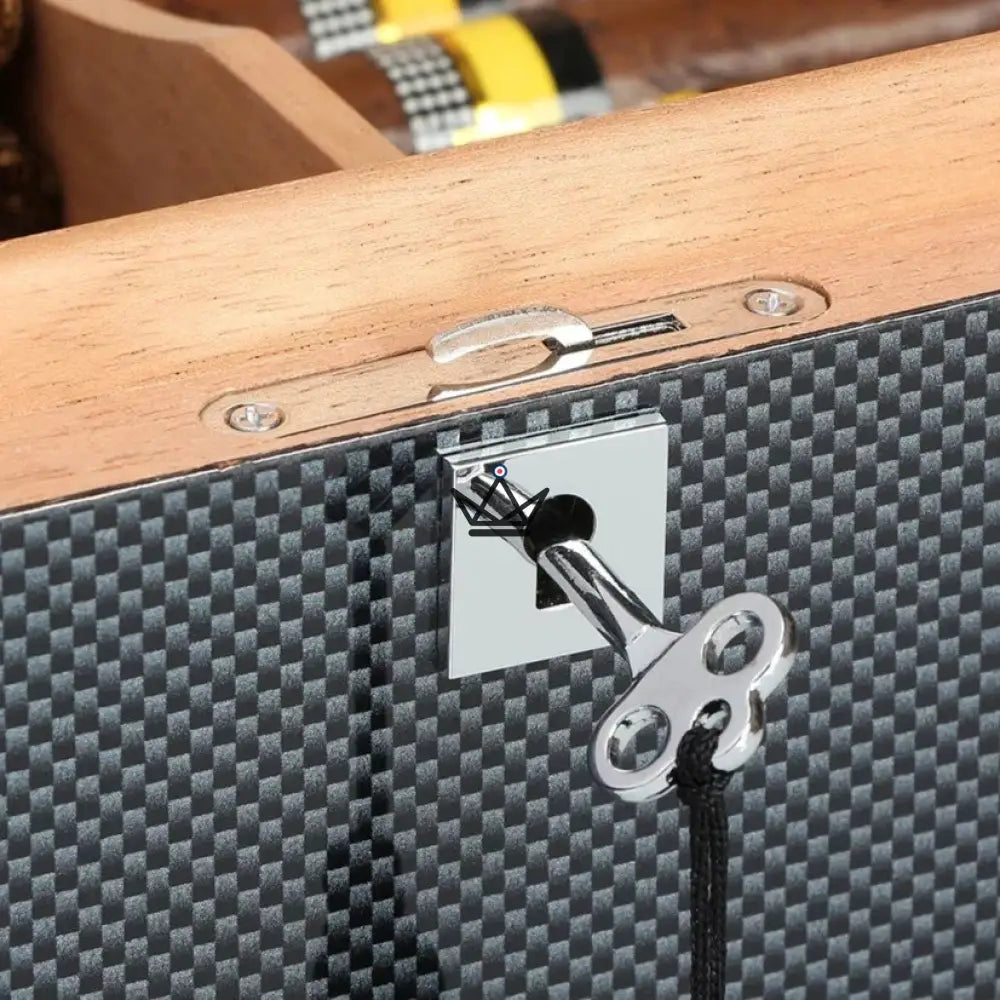 Sein einzigartiges Design verbindet gekonnt Tradition und Moderne mit seinem Carbonfaserband, das ihm ein entschieden modernes Erscheinungsbild verleiht. Diese ästhetische Note verleiht dieser außergewöhnlichen Zigarrenkiste einen Hauch von Raffinesse.