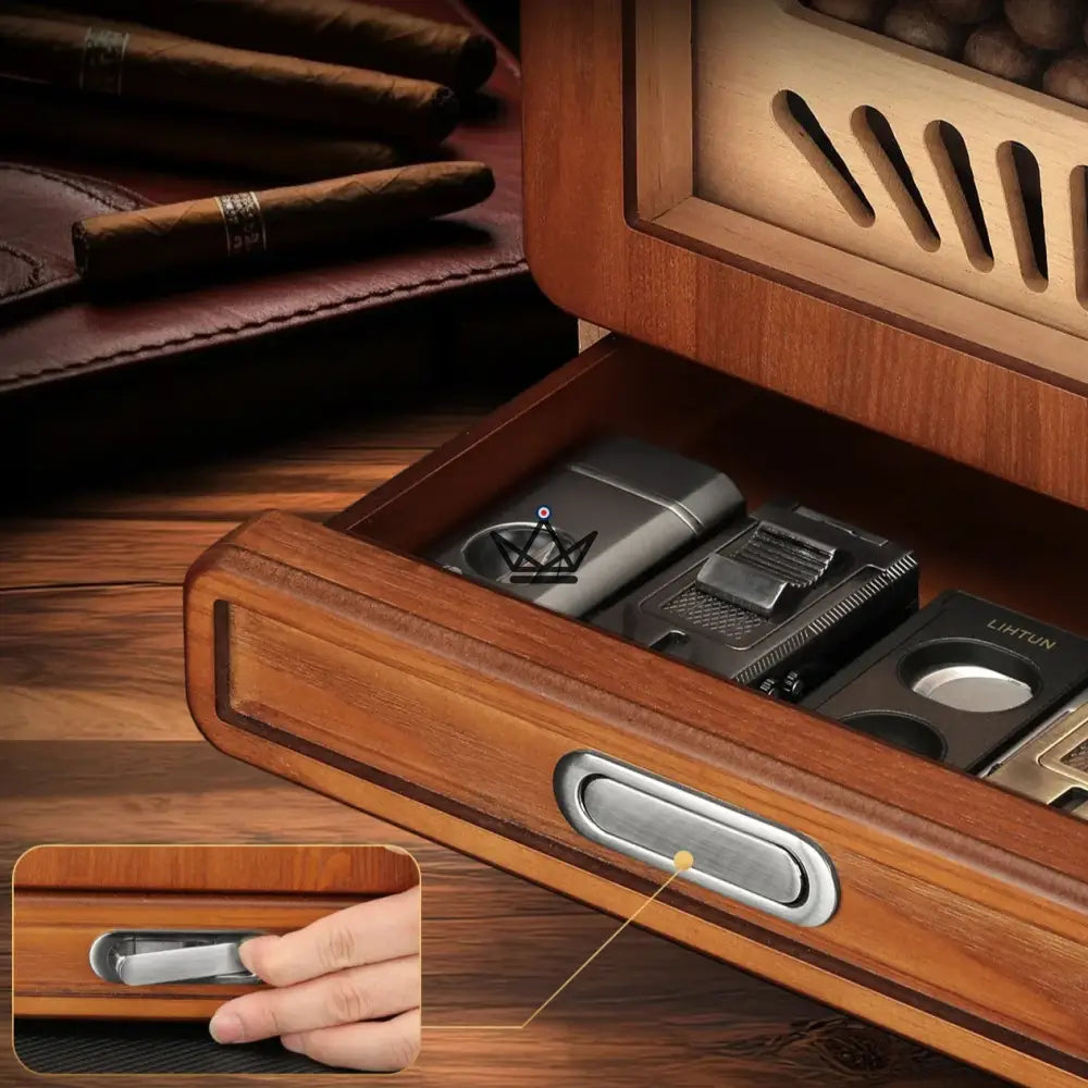 - Untere Zubehörschublade : Bewahren Sie Ihre Feuerzeuge , Zigarrenschneider , Scheren und andere wichtige Accessoires in einem diskreten Fach auf.