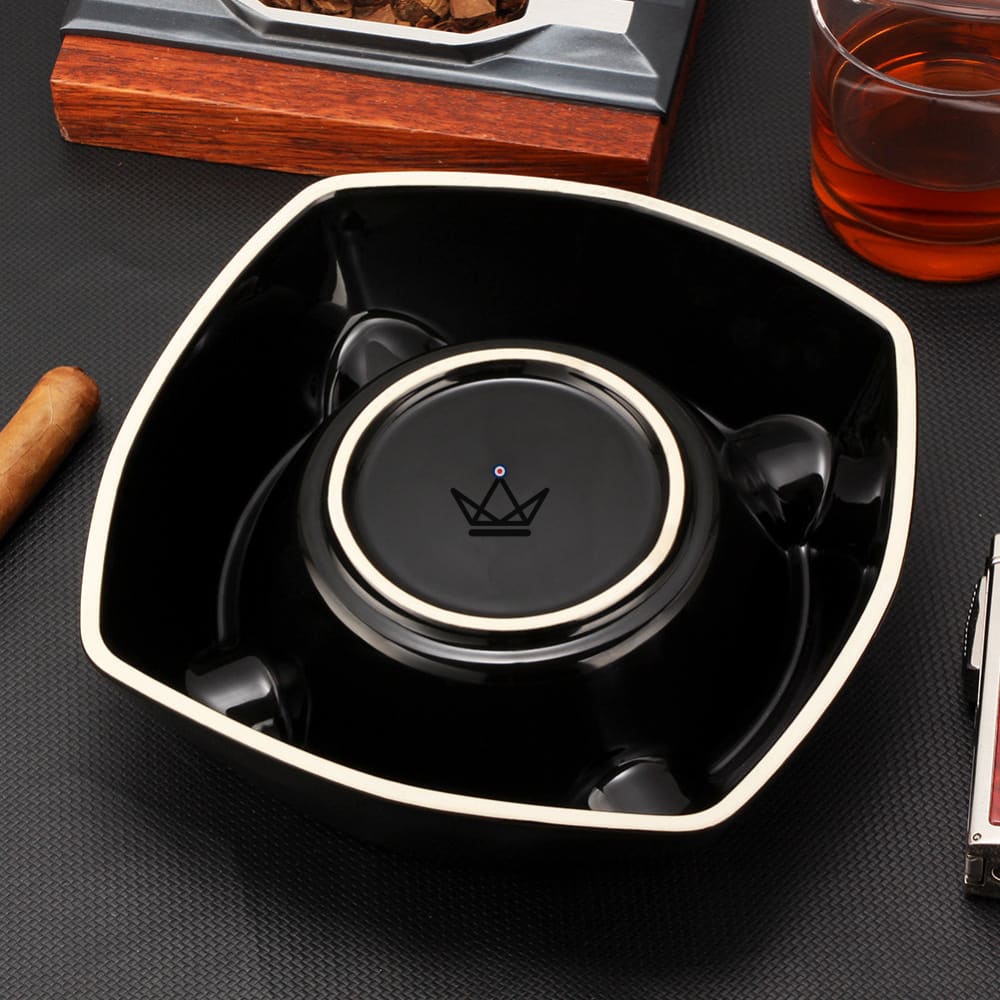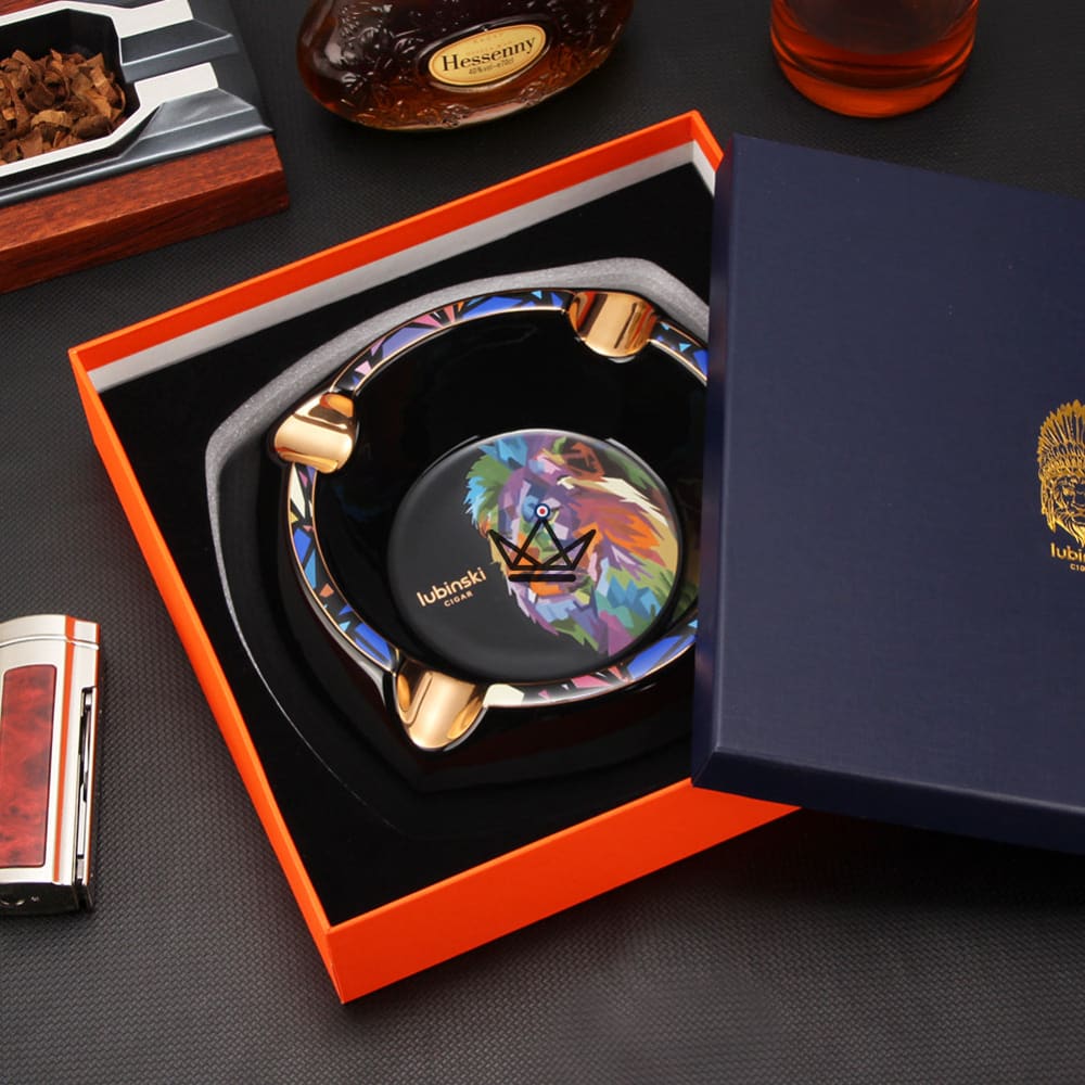 Diese beiden Modelle bieten die gleichen Funktionen und die gleiche Qualität, jedoch mit Farbvarianten, die zu unterschiedlichen Einrichtungsstilen und persönlichen Vorlieben passen. Der Luxus-Zigarren-Aschenbecher – Lion Prism wird in einer eleganten Box geliefert, was ihn auch zu einem tollen Geschenk für Zigarrenliebhaber macht.