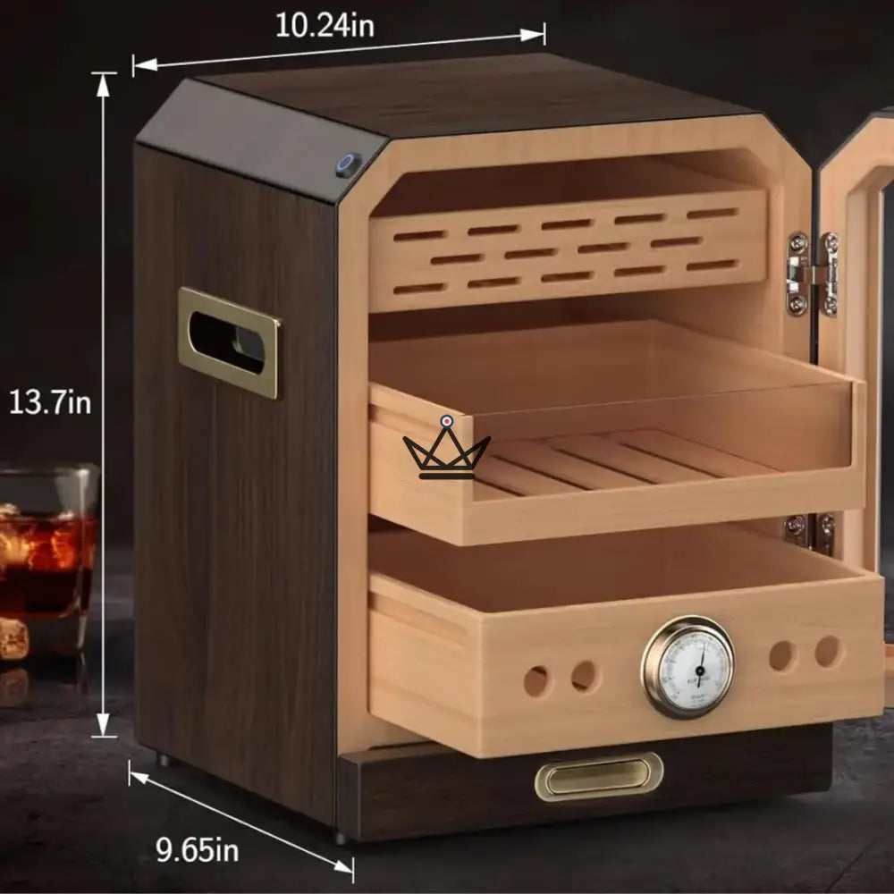The Prestige Cedar Lux Cigar Humidor embodies the ideal combination of refined design , advanced preservation technology and noble materials . Designed for true enthusiasts, it guarantees optimal storage while enhancing the presentation of your cigars.