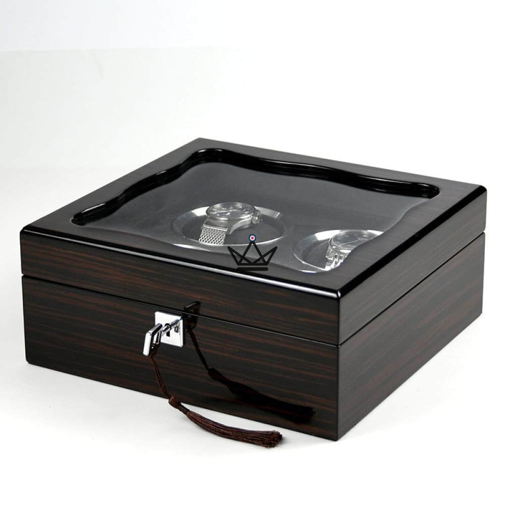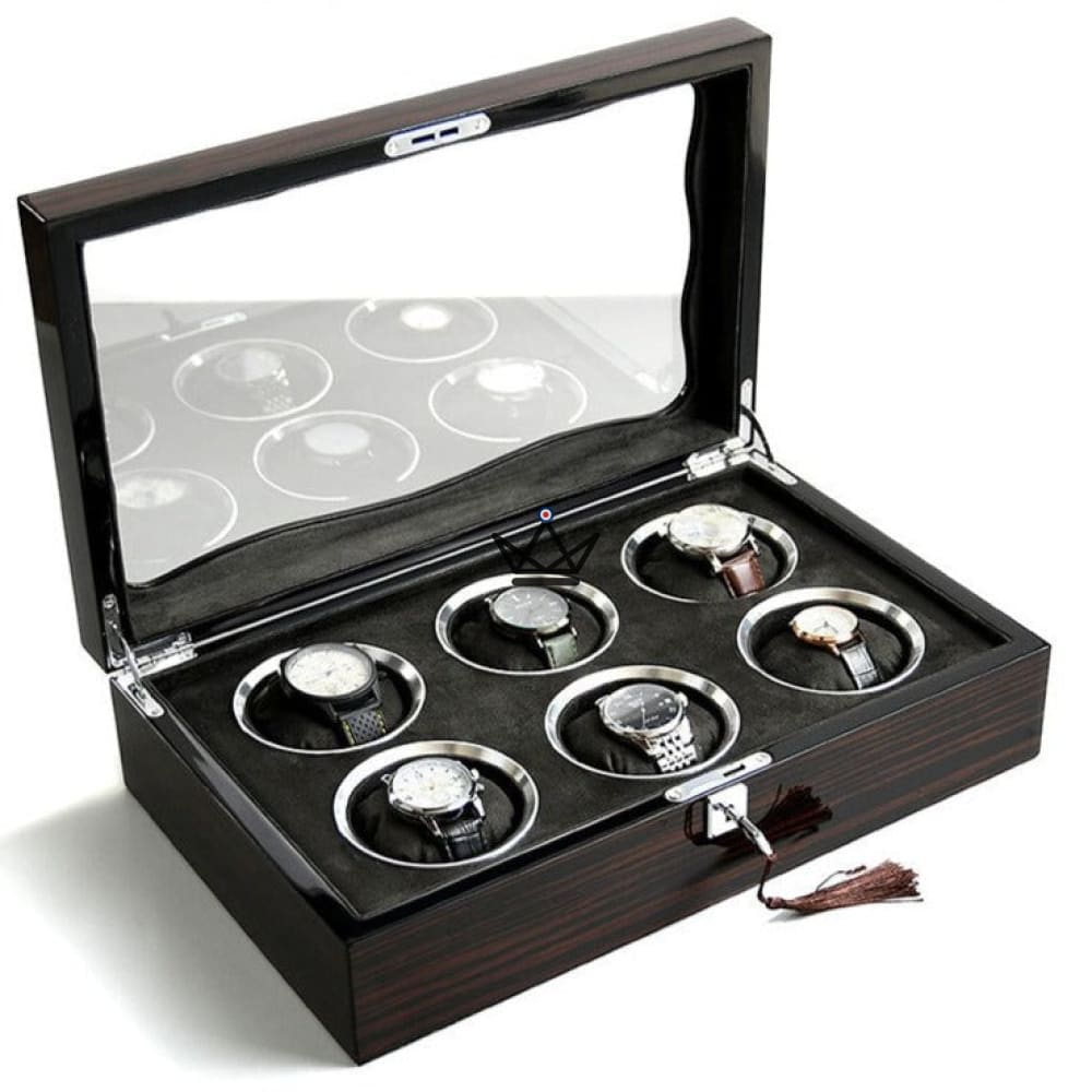 The lid of the box has a window that allows you to easily view your watches inside, while protecting them from dust and scratches. It closes with a key to provide additional security.