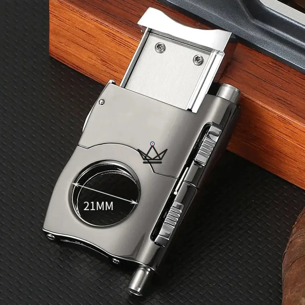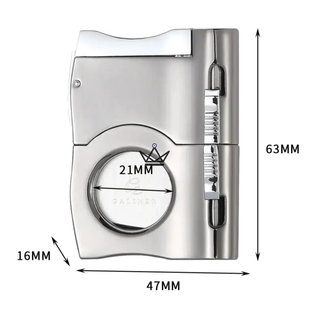 With a diameter of 21mm, this cigar cutter is ideally suited to standard size cigars. Its brushed metal design gives it a modern and sophisticated look, reflecting your love for the art of enjoying a fine cigar.