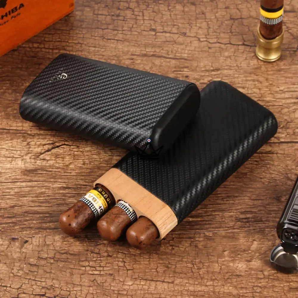 The CARBON WOOD 3 Cigar Case is a perfect choice for cigar lovers who want to combine style, protection and functionality while traveling. Made with high-quality materials such as carbon fiber and cedar wood, this case offers a stylish solution for safely transporting your cigars.