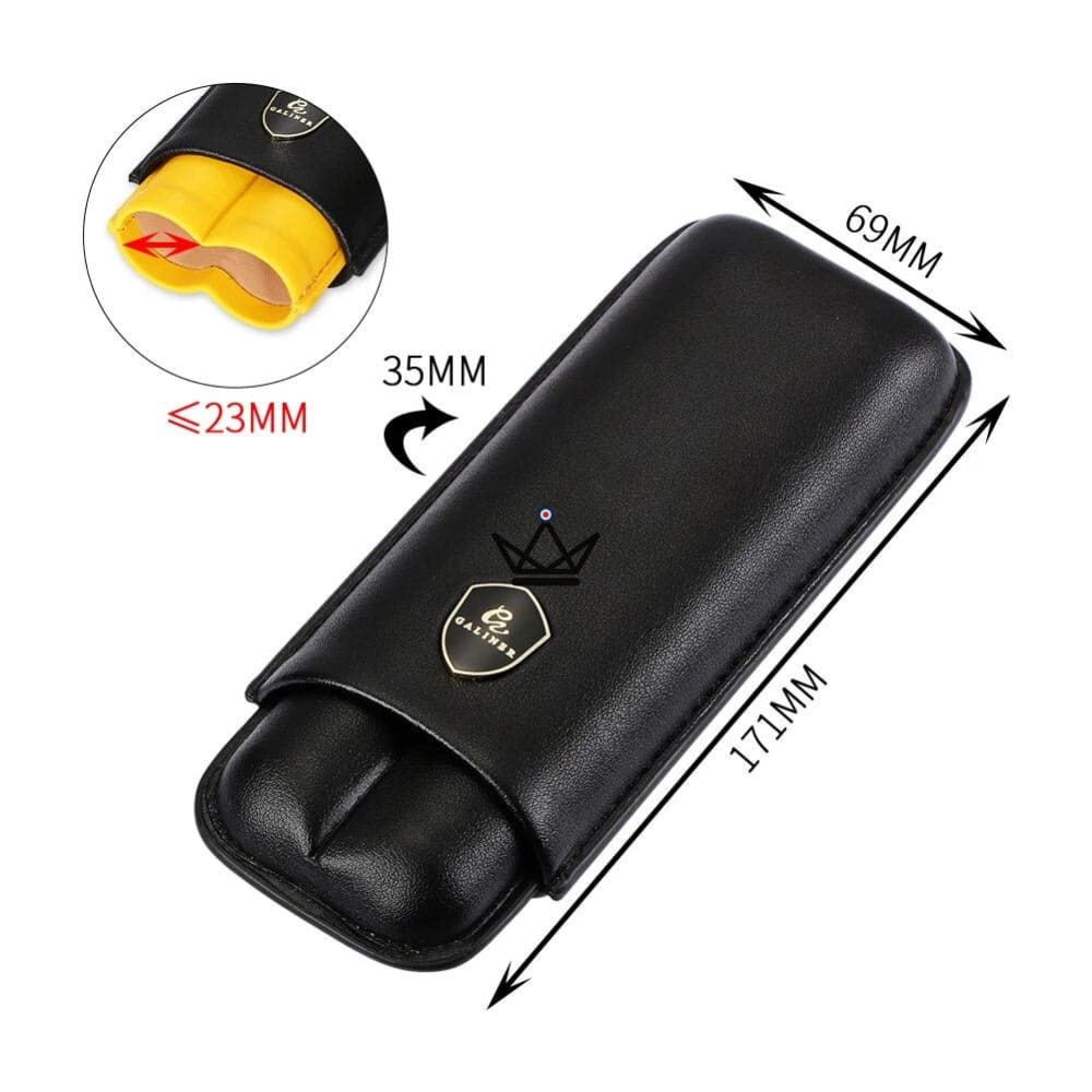 Made of cowhide leather, a sturdy and durable material, the case effectively protects your cigars from shocks and humidity. It is specifically designed to hold two cigars, with compact dimensions of 17.1 x 6.9 x 3.5 cm, making it a practical and stylish travel companion.
