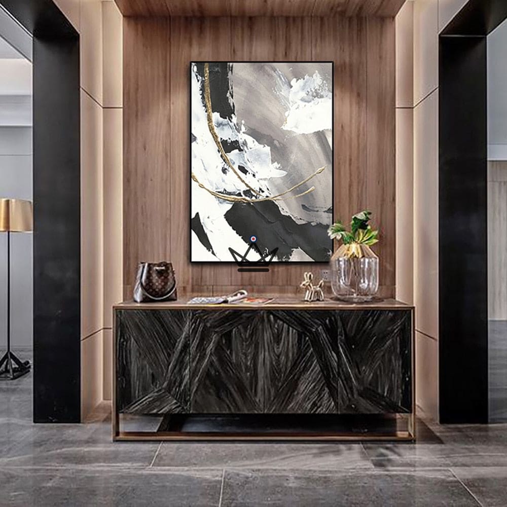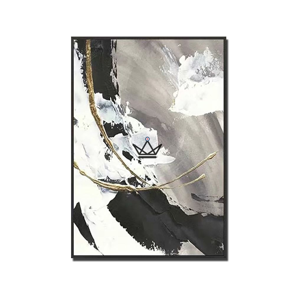 Add a modern and sophisticated artistic touch to your interior with this large-scale handmade oil painting. The gold, black and white textures offer a unique abstract effect, which will match perfectly with your decoration.