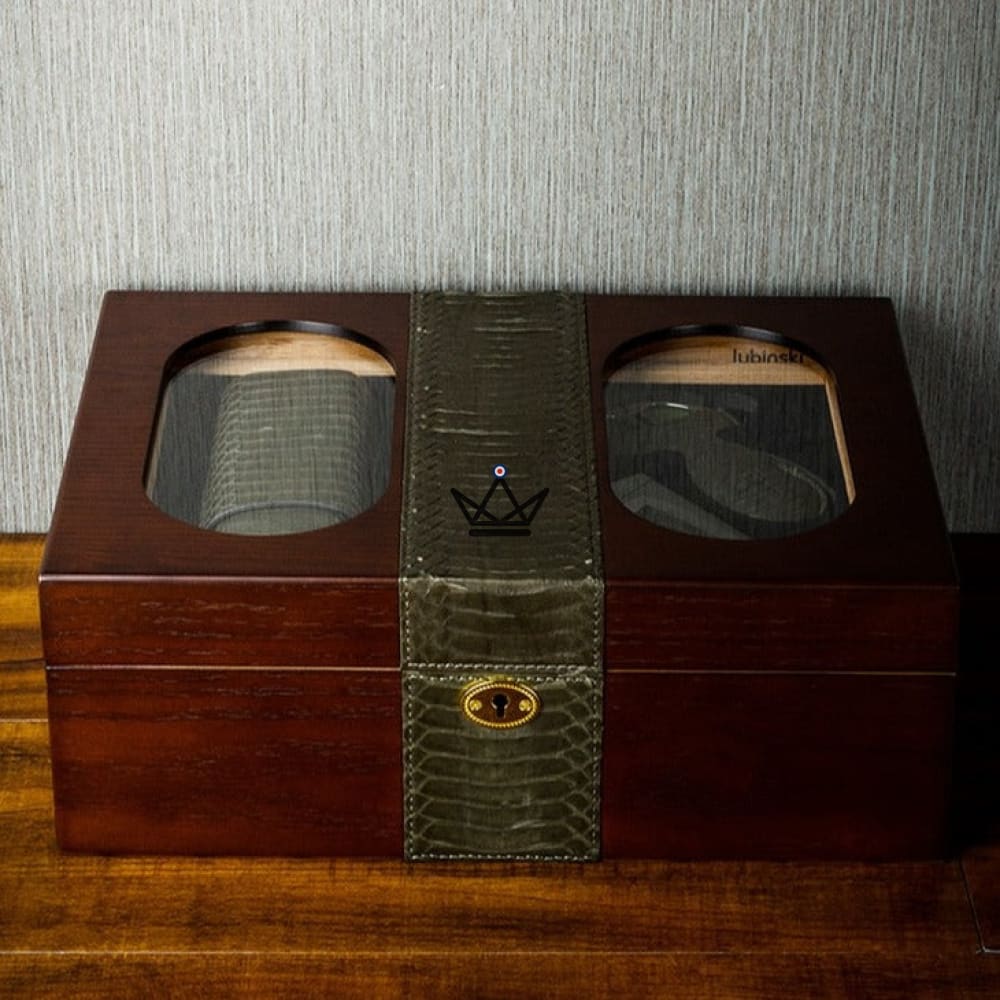 Le design de Aurelius Luxe allie modernité et esthétique agréable. La bande en cuir verte avec motif alligator sur le milieu de la cave ajoute une touche de sophistication, tandis que les vitres ovales de part et d'autre du couvercle permettent de mettre en valeur vos cigares préférés.