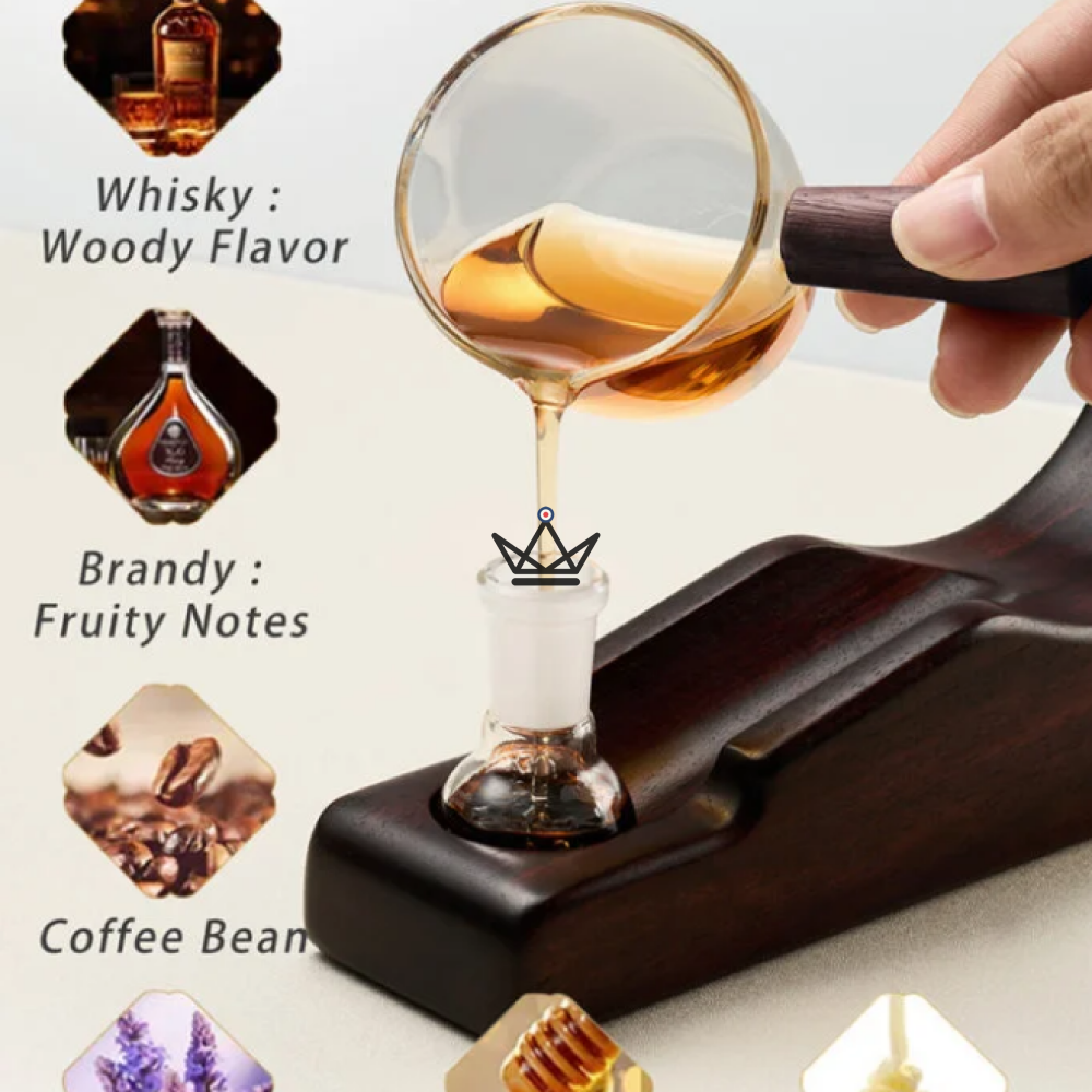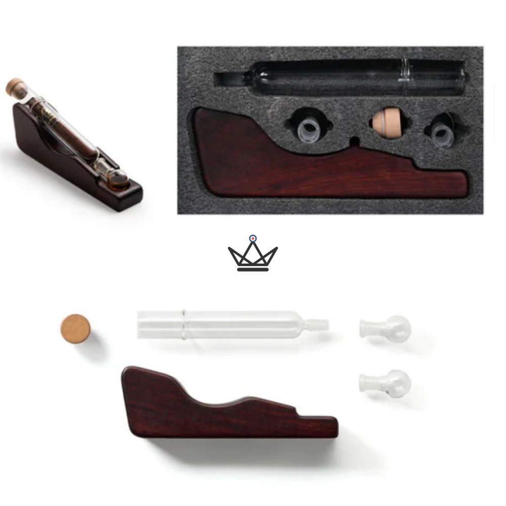 La particularité de ce modèle réside dans sa chambre d'infusion intégrée à la base, que vous pouvez remplir d’un liquide aromatique de votre choix : whisky, cognac, rhum, miel ou encore lavande. Le cigare, positionné dans la section supérieure, s’imprègne en douceur des effluves sélectionnés, sans contact direct avec le liquide.