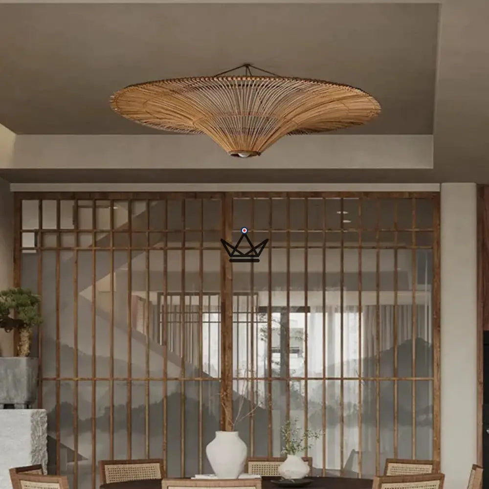 La suspension Saturne Lumineux est une œuvre d'art fonctionnelle qui offre une touche de nature et d'artisanat à tout intérieur. Inspirée par l'élégance des éventails traditionnels, cette pièce maîtresse est conçue pour apporter une ambiance chaleureuse et une dimension esthétique exceptionnelle à votre espace de vie.