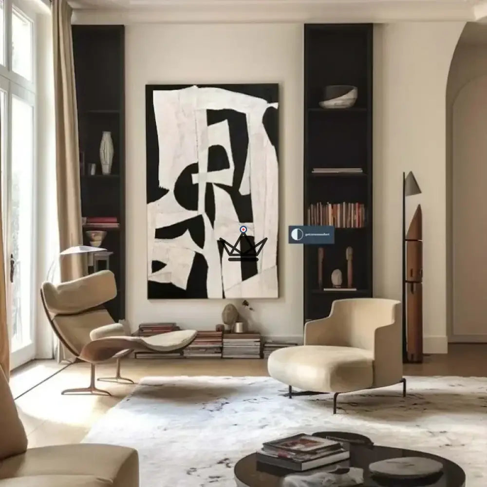 Découvrez notre nouvelle collection exclusive de toiles peintes à la main, "Monochrome Abstraction". Cette collection se compose de cinq variantes uniques qui explorent la beauté du minimalisme à travers des motifs abstraits en noir et blanc. Chaque toile est soigneusement créée sur commande, offrant une œuvre d'art unique pour embellir n'importe quel espace intérieur.