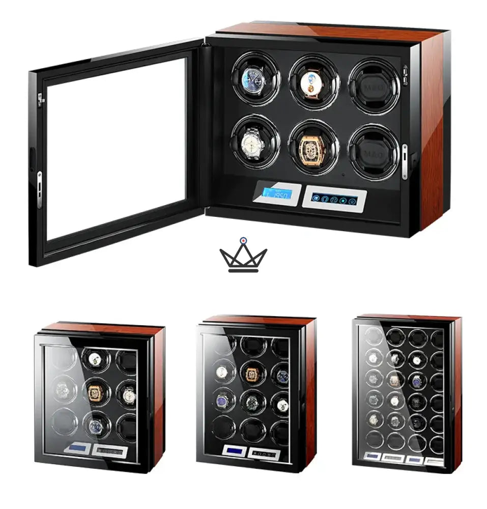 Notre remontoir Winder Lux possèdent jusqu'à 12 rotors selon le modèle, chacun pouvant être réglé indépendamment des autres afin d'ajuster la recharge en fonction du modèle et de la marque de vos montres (Rolex, Patek Philippe, Hublot, Cartier...)